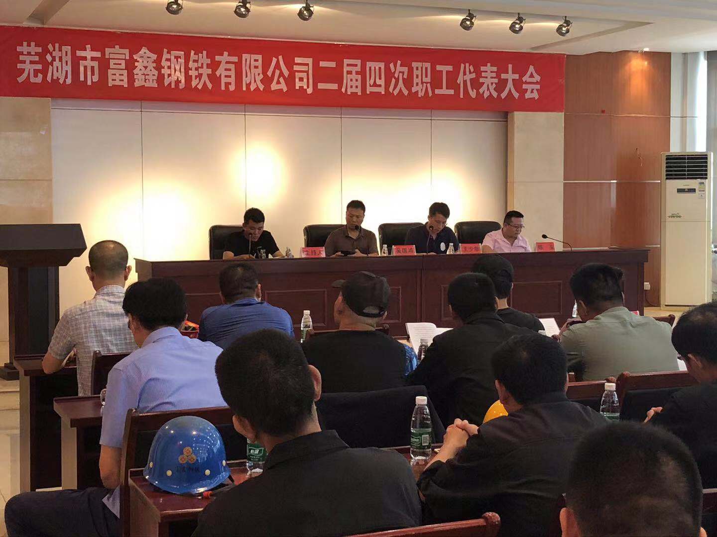 2019年8月6日上午9時(shí)蕪湖市富鑫鋼鐵有限公司第二屆第四次職工代表大會(huì)在雄壯的國(guó)歌聲...